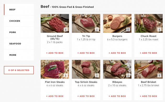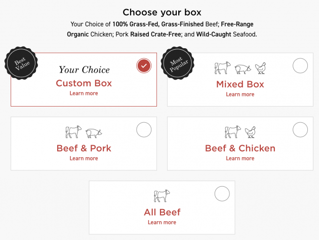 Once you choose which box you’d like, then you pick your monthly box size. You can choose between a Classic Box ($169/month) or a Big Box ($306/month). The price varies depending upon which type of meat box you chose.