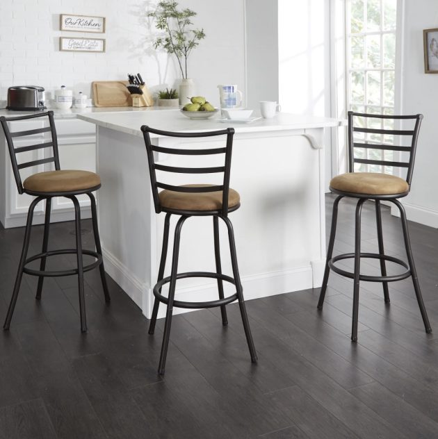 Walmart has this Mainstays 3 Pack Adjustable 24″ or 29″ Bronze Ladder Back Swivel Barstools for just $49 shipped right now! Available in tan for this price.