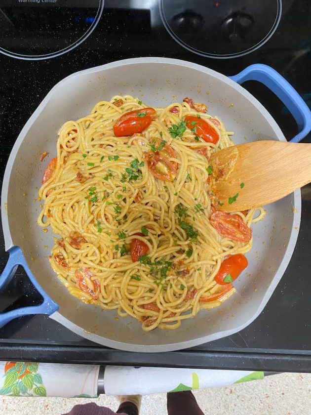 We love all the recipes HelloFresh recently sent us, but our two favorites were Sun-Dried Tomato Spaghetti and Creamy Lemon Spinach Ricotta Ravioli!