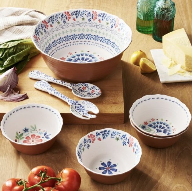 Walmart has this The Pioneer Woman Hattie 7-Piece Bamboo Melamine Salad Bowl Set for just $12.94 right now!