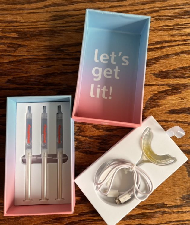 This set includes whitening gel, gel applicants, and a LED mouthpiece with power cord.