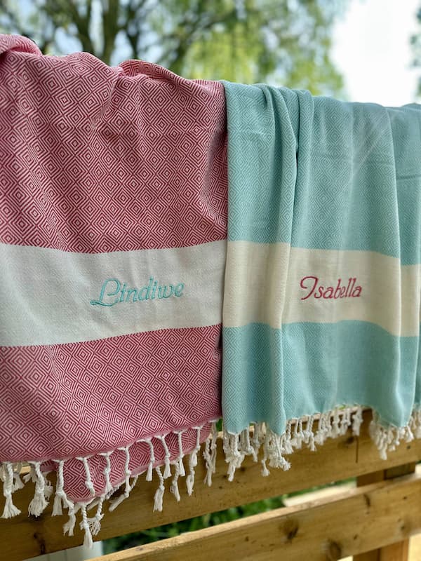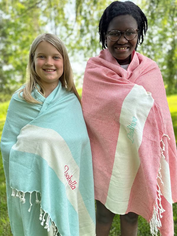Sarah here — I ordered a couple of these personalized towels and my girls are thrilled! They love the fun colors and quick drying—and having their names on them makes it extra special.