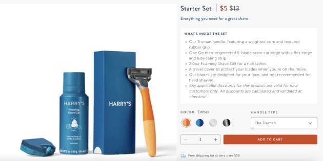 When you sign up for this $5 shaving bundle, you’re signing up for a monthly subscription to Harry’s razors at the regular price.