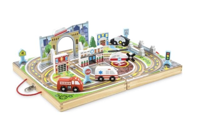WOW! This is an amazing deal on this Melissa & Doug Wooden Take-Along Tabletop Town Playset!