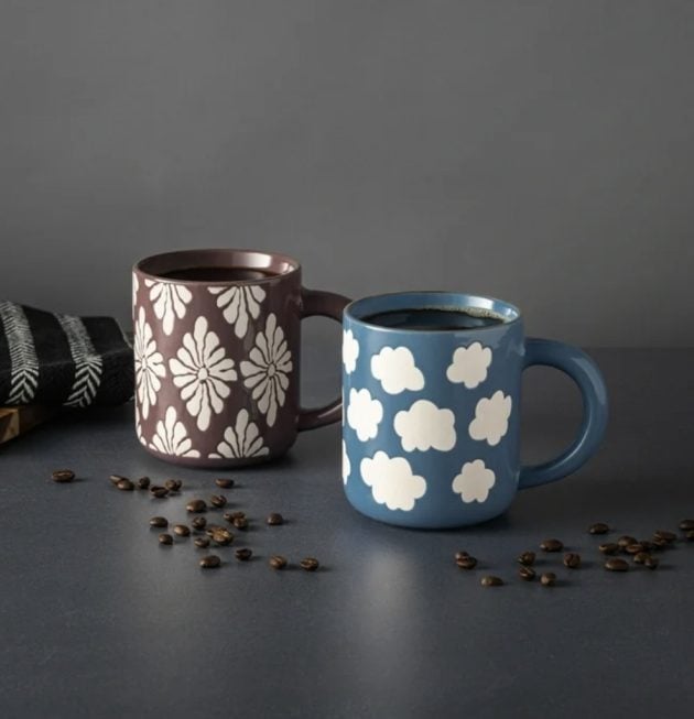 Get these Thyme & Table 2 Pack Blue Skies with Clouds and Purple with White Flowers Mugs for just $5.48!