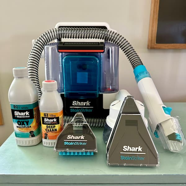 Sarah here — I love my Stainstriker!! The amount of dirt and grime it got out of our kitchen chairs’ upholstery was amazing! I love the compact size! I also love that the pet mess tool keeps the mess out of your hose and main compartment by filling a separate receptacle.