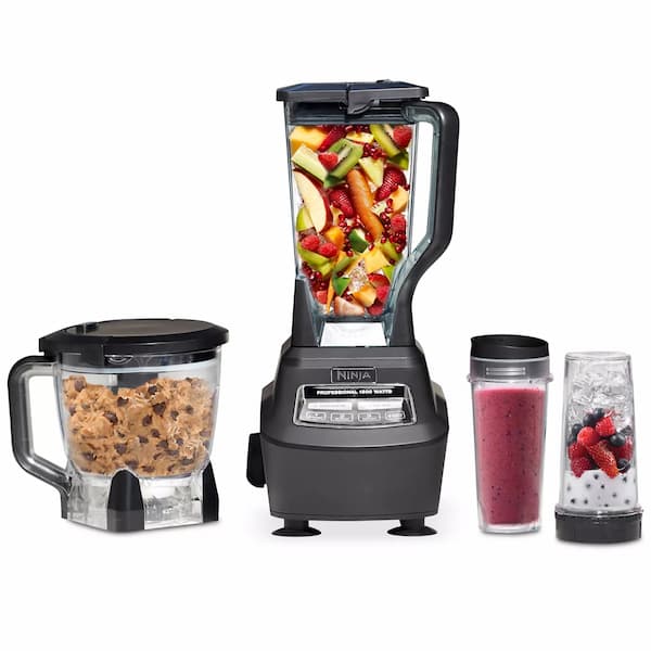This versatile system comes with a pitcher, food processor bowl, two Nutri Ninja cups, and four blades for chopping, pulverizing, blending, and more.