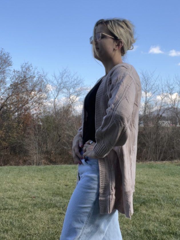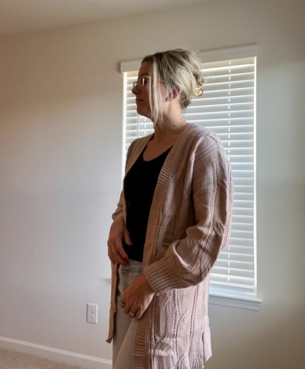 Gretchen here! I have this cardigan and love it SO much. It is so soft and warm and the perfect thing to wear on cold days. It’s super cozy as well.
