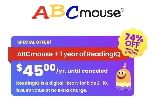 Don’t miss this sale that ABCmouse is running right now!! As a special 4th of July sale, you can get FREE access to ReadingIQ for one year with the purchase of an annual subscription of ABCmouse! That means you’ll get an entire year to both programs for just $45, which is a huge savings! (After…
